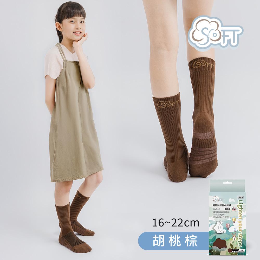【SOFT】 醫療級 輕壓柔軟舒適防蚊襪 兒童款 胡桃棕